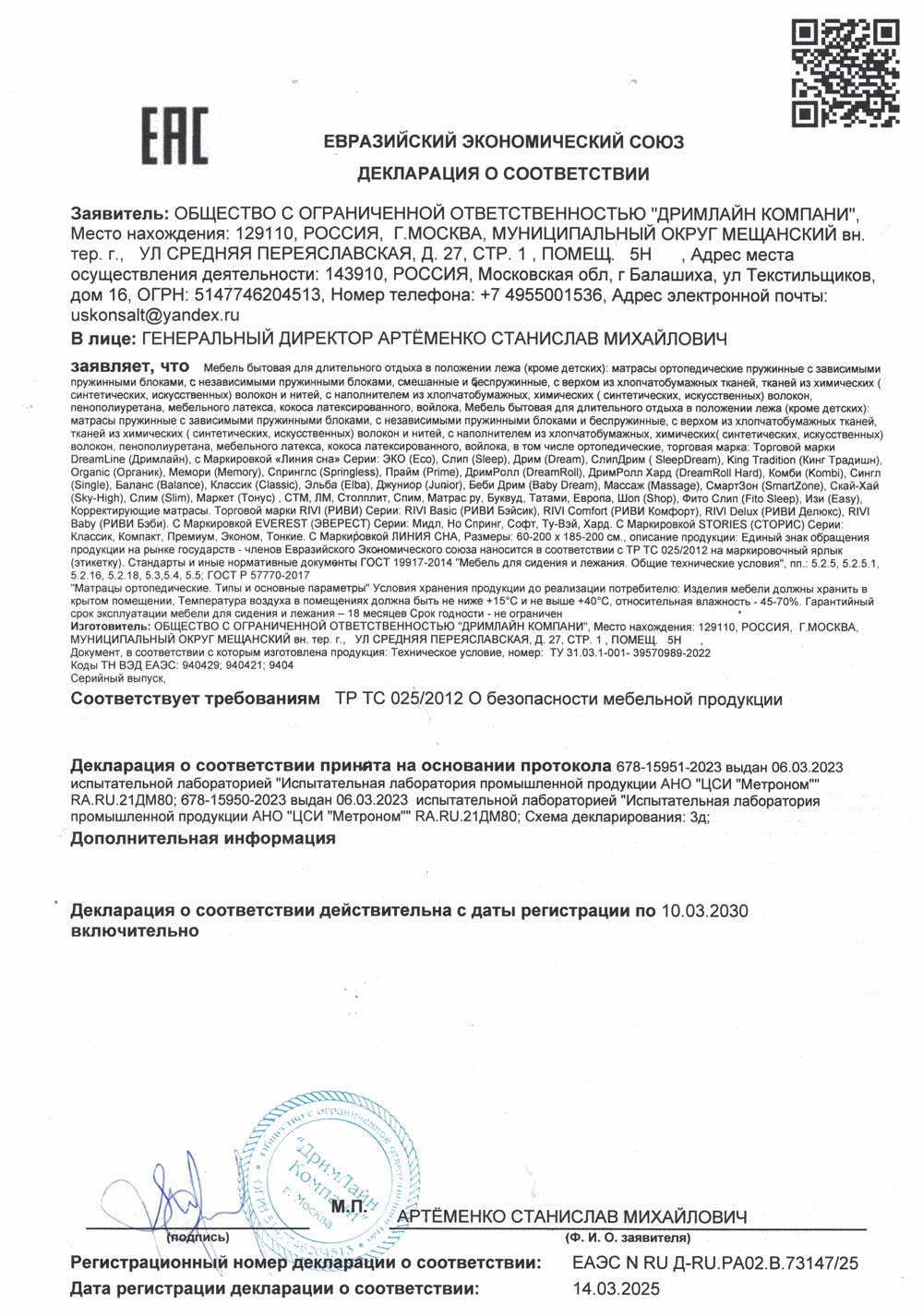 - Продукция имеет сертификат соответствия